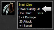 what weapons you can use and what armor you can wear. Every item has a Power Rating.